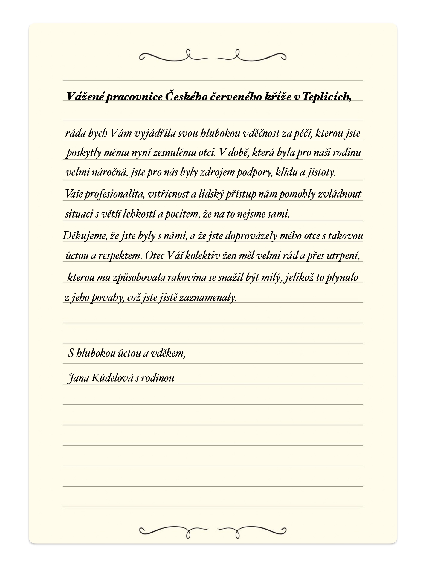 Vaší pomoci si opravdu velmi vážíme – akce byla organizačně i technicky mimořádně náročná, ale i díky Vám a nasazení celého týmu ČČK Teplice proběhlo vše bez problémů a s maximální profesionalitou.